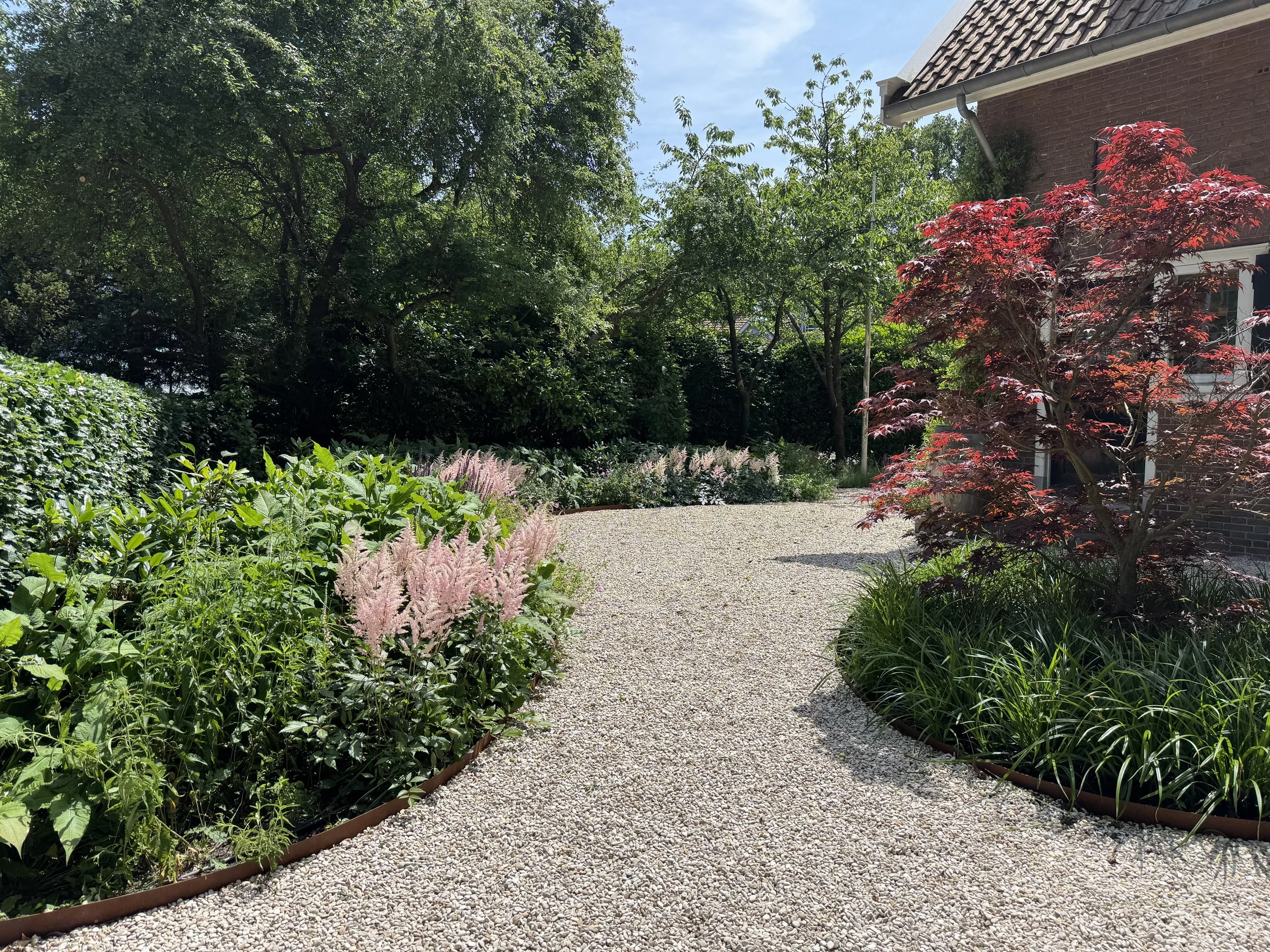 We houden rekening met de ligging, de bodem en het gebruik. Of het nu gaat om een rustige, onderhoudsarme tuin, een speelse gezinstuin of een meer natuurlijk ontwerp, we zorgen dat het klopt, van het grote ontwerp tot in de details.